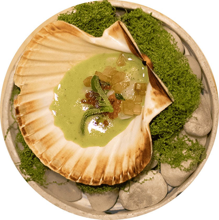 Ofrecemos dos menús degustación. Menú corto de 6 pases y Menú largo, compuesto por 11 pases. Además, disponemos de fueras de carta según mercado y estación.
